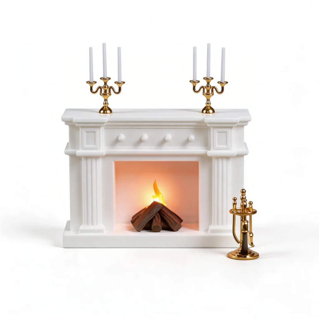 With true-to-life proportions and delicate detail, this dollhouse fireplace flickers softly, warming every miniature space.