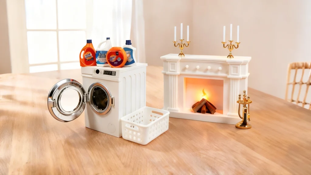 This miniature washer and dryer set features finely crafted details and true-to-life scale. Perfectly sized to fit your dollhouse, it brings an authentic touch to any tiny space.