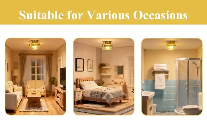 - Elegant Gold Ceiling Light: Each light features a clear shade with delicate floral patterns. When lit, the soft glow shines through the shade, adding a warm and elegant touch to any room.