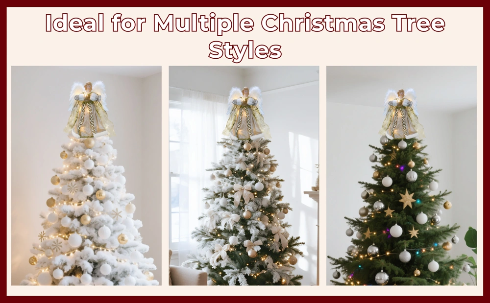 - Easy to Install – The cone-shaped base of the angel tree top makes it compatible with most Christmas trees. Also, it can be placed on a table, a windowsill, or a bookshelf as decoration.