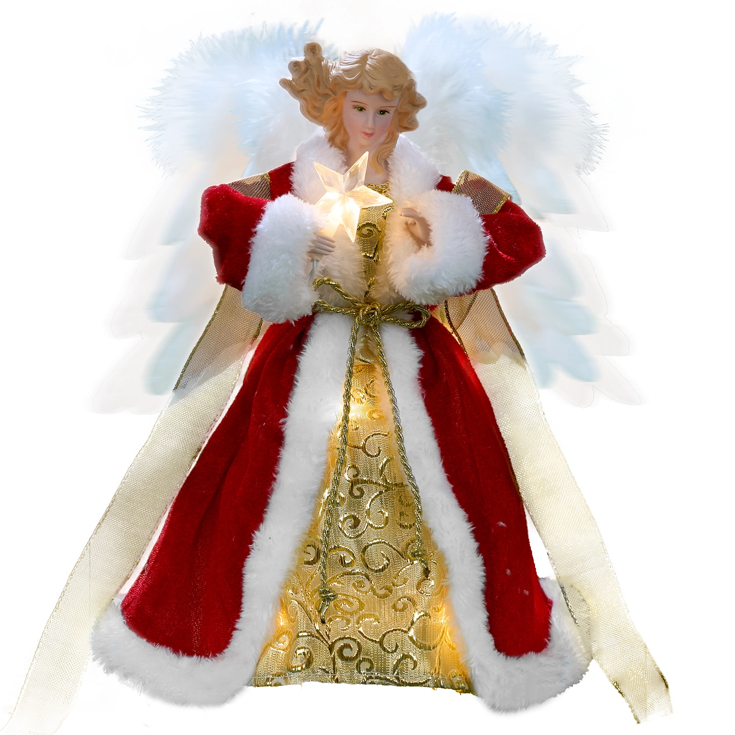 12″ LED Elegant Red Angel Tree Topper with Moving Wings